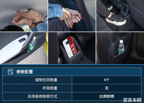 保持前排座椅位置不變,體驗者來到第二排,坐好后頭部空間同樣為一拳兩指,腿部空間一拳三指,與同級別車型相比空間余量充足。不過后排中間較高的地臺凸起,侵占了中間乘客的腳部空間,比較影響舒適性體驗。儲物空間方面,后排的儲物槽數(shù)量不多,除了后車門儲物槽外,在前排中央扶手后方還配備了一個儲物槽,但深度一般,不適于放置手機。此外前排座椅背袋只有副駕駛一側(cè)提供,能夠放置如文件夾等較薄的物品。