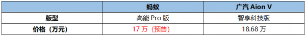 從兩款車型價格可以一眼看出,螞蟻和廣汽Aion V相差近2萬元,差異如此明顯的價格優(yōu)勢,對消費者來說吸引力十足,較低的價格也正是追求性價比的消費者最樂于看到的。
