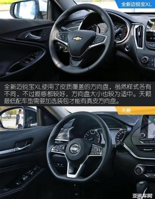 對比的兩款車型為雪佛蘭全新邁銳寶 xl 2019 款 535T 銳聯(lián)版(也就是 1.3T 頂配)、日產(chǎn)天籟 2019 款 2.0L XE 時尚版(也就是 2.0L 最低配)。二者官方指導(dǎo)價分別為 17.49 萬、17.98 萬。兩款車型都屬于入門動力的版本,價格也相近,具備一定的對比參考性。需