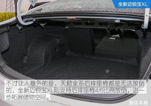 在空間方面,全新邁銳寶 xl 與天籟都是偏家用的轎車,所以儲物空間設(shè)計都是有考慮到的,二者在車內(nèi)儲物表現(xiàn)上差異不大。后備箱兩個車儲物能力也相仿,但天籟后排無法放倒,這一點會影響空間利用表現(xiàn),而全新邁銳寶 xl 則是支持后排座椅 4/6 比例放倒。