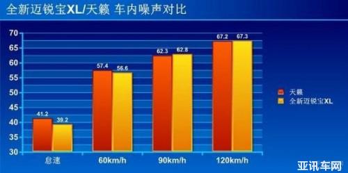 車內(nèi)噪聲實測,在中低速情況下,全新邁銳寶 xl 表現(xiàn)要比天籟好,在高速方面二者表現(xiàn)相近,水平不相上下。