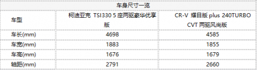 本田CRV相比柯迪亞克選哪個(gè)好——柯迪亞克在車型尺寸和內(nèi)部空間上更勝一籌
