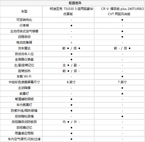 本田CRV相比柯迪亞克選哪個(gè)好——柯迪亞克在配置方面更為豐富