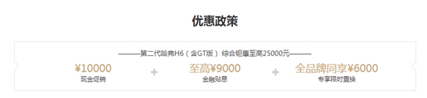 除了動(dòng)力之外,消費(fèi)者購車最看中的肯定還是性價(jià)比,全面煥新的第二代哈弗H6為消費(fèi)者帶來了巨大的優(yōu)惠福利,現(xiàn)在購車就可享受10000元現(xiàn)金優(yōu)惠、至高9000元金融貼息和6000元專享限時(shí)置換,綜合鉅惠高達(dá)25000元。省下的這25000元足以承包你幾年的油費(fèi),有這樣的大實(shí)惠,屏幕前的你可不要錯(cuò)過呀。