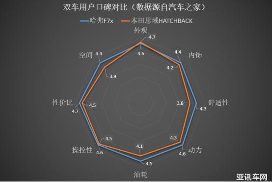 以5分為滿分,各維度下哈弗F7x幾乎全方位超越本田思域HATCHBACK。再購車需求的強(qiáng)弱上,無論是動力、舒適性、外觀以及空間上哈弗F7x都處于領(lǐng)先地位,零點(diǎn)幾的差距也是口碑的積累。這樣的“全面發(fā)展的高材生”誰看了都會心動吧。