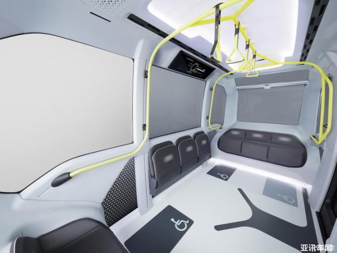 進(jìn)入到車內(nèi),車廂內(nèi)的地板/內(nèi)部裝飾/座椅也采用反差色來幫助色弱患者進(jìn)行區(qū)分之外,它具有多個車門供乘客上下車,為乘客的出行提供保障。車廂內(nèi)部最多可同時乘坐4位使用輪椅的乘客和7位站立的乘客(如果同時為站立的乘客,可容納包括操作員在內(nèi)的20人)。