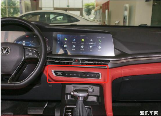 反觀長安CS75 PLUS,其內飾氛圍主打科技感,連屏設計打造出對駕駛員的包圍感,但中控屏下方的空調按鍵是觸控式,只有風量調節(jié),溫度和出風模式調節(jié)需要在屏幕內完成,那么問題來了,駕駛盲操怎么辦?我記得在UNI-T的設計發(fā)布時,設計師有重點強調空調這樣的常用按鍵要支持盲操,品牌方不會愚蠢到覺得長安CS75 PLUS的用戶群體比UNI-T的更年輕、更前衛(wèi)?