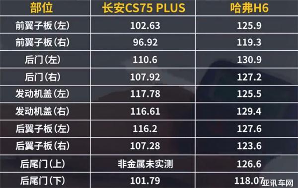 以往車漆工藝不是被人忽略,就是被誤解越厚越好。實際上,車漆工藝主要用來評定車輛打造的細心程度與技術水平,即車身各個部位的車漆厚度誤差越小越好。如圖所示,我們對車輛進行了不同部位的抽檢,并進行左右或上下的對比,可以發(fā)現(xiàn)第三代哈弗H6與長安CS75 PLUS左右噴涂對比都有一定誤差,但前者各個部分的噴涂誤差不超過10微米,后者噴涂誤差卻超過20微米,工藝高低立見高下。而且在測量過程中,小編發(fā)現(xiàn)長安CS75 PLUS后尾門上半部為塑料板材,一旦遇到極端冰雹天,很容易被砸裂……