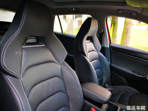 當(dāng)然,GT版和普通版的最大區(qū)別,就是把前排座椅換成了一體式的運(yùn)動(dòng)風(fēng)格座椅。這套運(yùn)動(dòng)座椅有著更強(qiáng)的側(cè)向支撐,軟硬度適中的內(nèi)部填充物也讓這套運(yùn)動(dòng)座椅有著不錯(cuò)的舒適性,而且它還支持主/副駕駛座8項(xiàng)電動(dòng)調(diào)節(jié)以及3組座椅記憶功能。