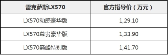 雷克薩斯LX570整個系列共有三款車型,分別是動感豪華版、尊貴豪華版和巔峰特別版,超高的售價極大地限制了它的受眾人群,即便是最低配的售價,也讓大部分消費者望而卻步,再參考它“不健全”的配置,品牌溢價不要太明顯!
