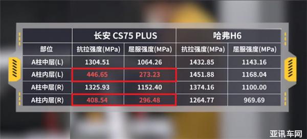 就安全配置方面來看,第三代哈弗H6圍繞“安全不分級(jí)”理念,全系標(biāo)配6安全氣囊,以及71.61%的高強(qiáng)度鋼車身。如圖所示,基于“外強(qiáng)內(nèi)軟、左高右低”的造車標(biāo)準(zhǔn),第三代哈弗H6的A柱中層、內(nèi)層均有著不錯(cuò)的拉伸與屈服強(qiáng)度,且關(guān)鍵部位像A柱外層、B柱、機(jī)艙縱梁、門框梁等,最高使用2000Mpa強(qiáng)度熱成型鋼。而C柱、D柱這些無需高強(qiáng)度剛的部位,第三代哈弗H6也是保持了“一視同仁”,沒有特別薄弱的部位。整體質(zhì)量品控、安全系數(shù)等與宣傳相符。