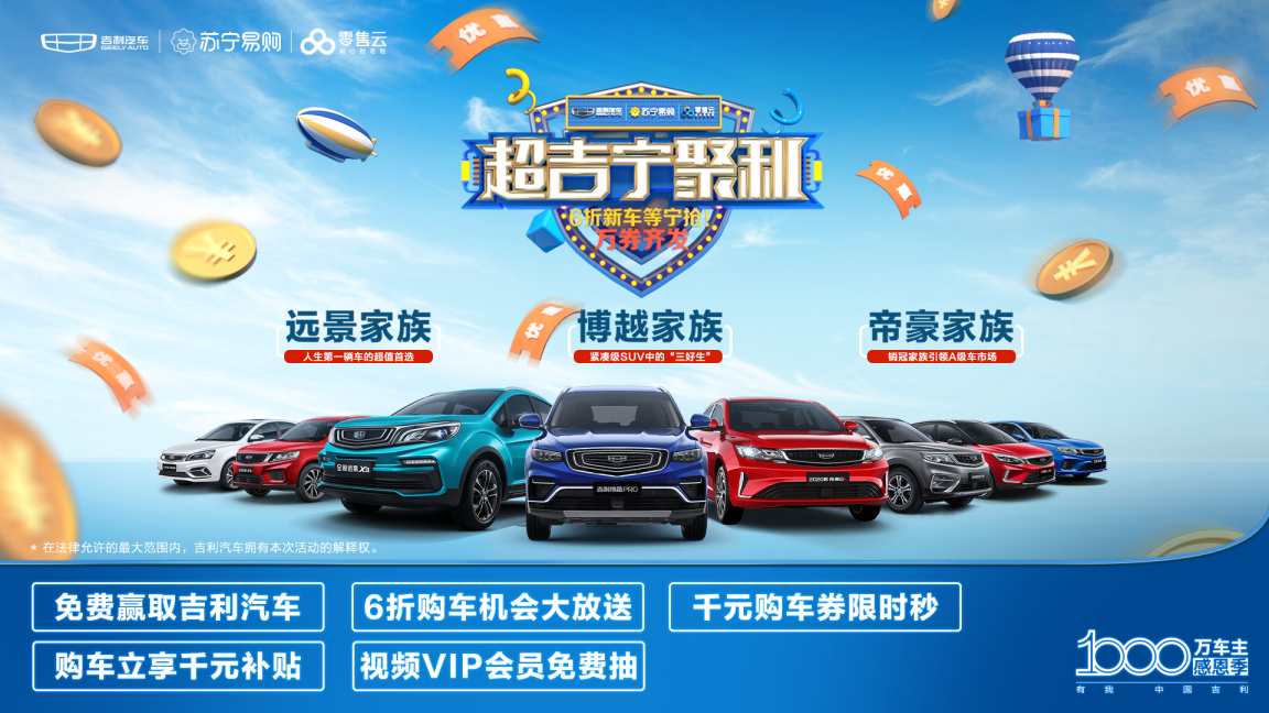 就價格來看,全新遠景的起步價僅4.99萬,跌進5萬區(qū)間內(nèi),而自動擋的起步價僅5.99萬,開創(chuàng)了“四字頭買手動、五字頭買自動”的先河;同時其還提供3年0息、前6個月0月供、至高3000元的現(xiàn)金優(yōu)惠等金融政策。除此之外,吉利汽車近期還聯(lián)合蘇寧零售云開啟了“超吉寧聚利”狂歡節(jié),大家可通過抽獎、限時秒殺等方式獲得全新遠景1000元購車券,線下購車還可額外享至少1000元的購車禮或置換補貼,可謂跌破了底價。