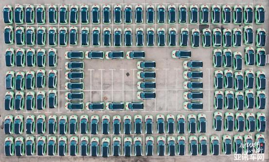 由近百輛果綠色的D1車輛擺放成“D1”造型,清新而又大氣,所有車輛配備大紅花,整裝待發(fā),氣氛熱烈,引人注目。