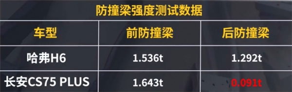 后防撞梁。第三代哈弗H6沒有出現(xiàn)厚度、長度、螺絲數(shù)等相關(guān)的減配現(xiàn)象,行人防護、維修經(jīng)濟性等可以得到很好的保障。類比下同為主流產(chǎn)品的長安CS75 PLUS即可見其中差距了。