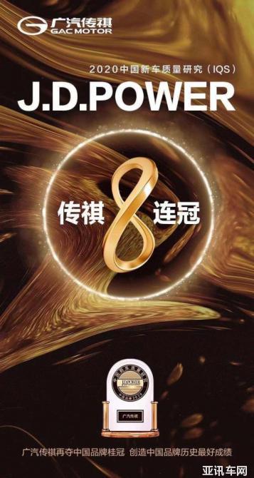 10月15日,在J.D.Power發(fā)布的2020中國(guó)新車(chē)質(zhì)量研究(IQS)報(bào)告中,廣汽傳祺品牌價(jià)值再獲認(rèn)可,蟬聯(lián)主流車(chē)市場(chǎng)中國(guó)品牌第一,實(shí)現(xiàn)“八連冠”,創(chuàng)造了中國(guó)品牌歷史最好成績(jī)。