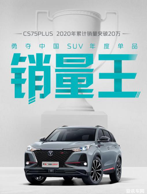 2020年,長(zhǎng)安汽車(chē)逆勢(shì)上揚(yáng),跑贏市場(chǎng)大盤(pán)。其中,長(zhǎng)安系中國(guó)品牌汽車(chē)?yán)塾?jì)銷(xiāo)售1503605輛,同比增長(zhǎng)12.9%,迎來(lái)自主品牌跨越式發(fā)展。作為推高長(zhǎng)安汽車(chē)銷(xiāo)量的絕對(duì)主力之一,長(zhǎng)安CS75PLUS在助推CS75系列登頂歷年銷(xiāo)量最高紀(jì)錄同時(shí),全年銷(xiāo)量也一舉突破20萬(wàn)輛大關(guān),收獲“中國(guó)SUV年度單品銷(xiāo)量王”桂冠!