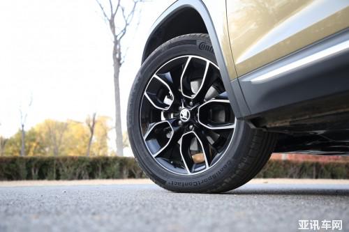 今天的試駕車采用了19英寸雙色五輻輪輞,造型雖談不上獨特。但使用的馬牌ContiSportContact5系列輪胎,確實誠意滿滿,輪胎尺寸為235/50R19V。