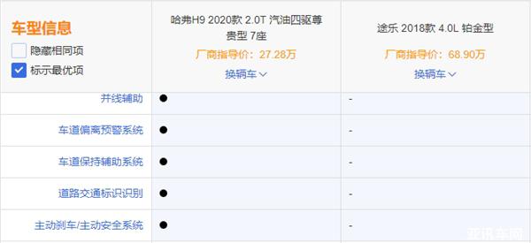 但是,日常駕駛中使用頻率較高的并線輔助、車道偏離預(yù)警、車道保持輔助、主動(dòng)剎車等,途樂卻呈現(xiàn)空白狀態(tài)。這樣一來,途樂對(duì)突發(fā)情況的應(yīng)對(duì)能力和安全系數(shù)就大大低于哈弗H9-2020款。