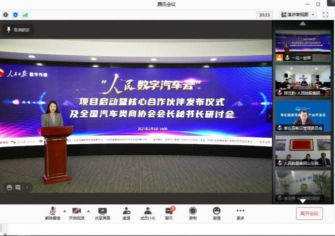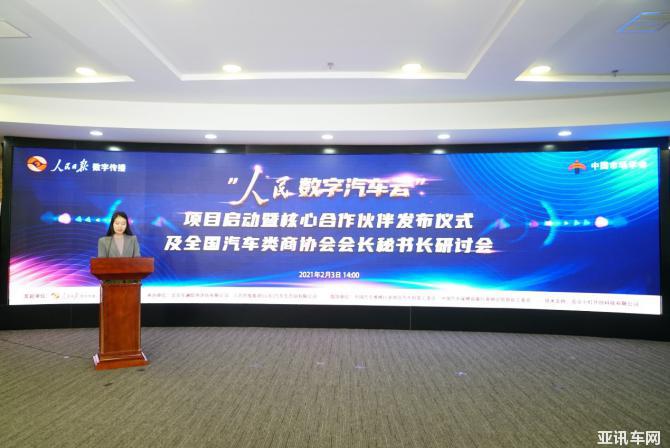 2021年2月3日,由中國市場學(xué)會、人民日報(bào)數(shù)字傳播聯(lián)合舉辦的“人民數(shù)字汽車云項(xiàng)目啟動暨核心合作伙伴發(fā)布儀式及全國汽車類商協(xié)會會長秘書長研討會”在北京人民日報(bào)社成功召開。