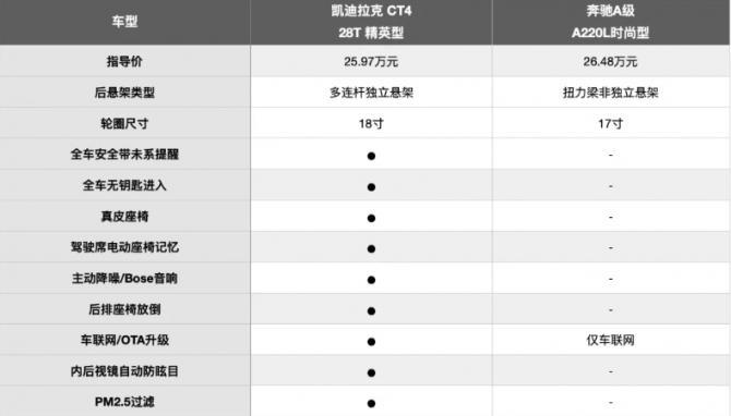 這不僅是A級(jí)和1系之流的問題,BBA品牌幾乎全車系都遵循著類似的配置邏輯。對(duì)比之下,凱迪拉克新世代的產(chǎn)品要簡單直接許多,從CT4與奔馳A級(jí)的同價(jià)位車款配置差異就能看出,凱迪拉克從一開始就沒有打算設(shè)置套路,不會(huì)讓消費(fèi)者因?yàn)轭A(yù)算而降低體驗(yàn)。