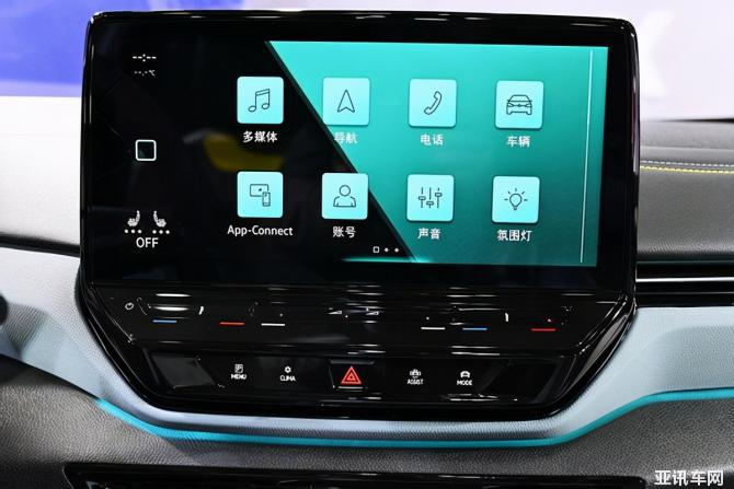 當然ID4X的趣味性還不止于此,其所配備的增強型抬頭顯示功能,投射效果比普通的抬頭顯示功能更加真實,效果仿佛與前方道路融為一體。而時下流行的氛圍燈也必不可少,ID4X不僅僅在于配備氛圍燈,而且燈帶集成ID. Light光語系統(tǒng),能夠變換顏色以及延伸的動態(tài)效果,以與用戶實現(xiàn)交互、導航等功能,甚至于直觀的警示駕駛者注意路況與安全,可以說相當新潮了。