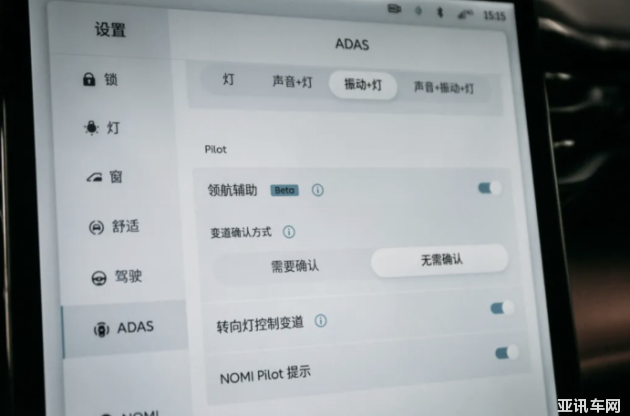 想要體驗(yàn)NOP領(lǐng)航輔助,首先得在A(yíng)DAS菜單里開(kāi)啟NOP選項(xiàng),而后需要設(shè)置目的地,因?yàn)檫@套系統(tǒng)是基于導(dǎo)航的自動(dòng)輔助駕駛,并需要高精地圖的輔助。