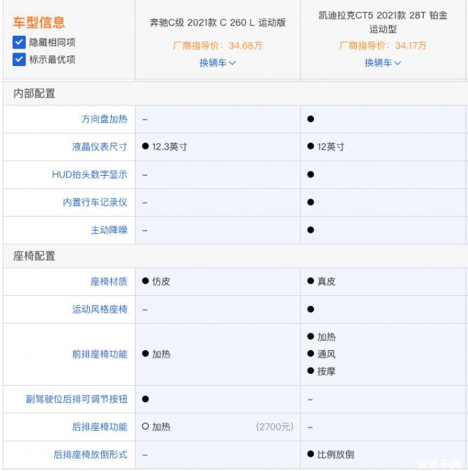 首先來看價格,奔馳C260L運動版線下為34萬多,凱迪拉克CT 5運動版為33萬多,價格上的差距并不大。