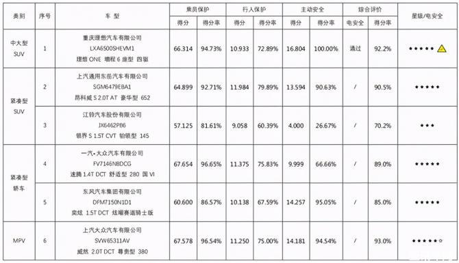 NCAP第一次評(píng)價(jià)結(jié)果,威然得分率最高