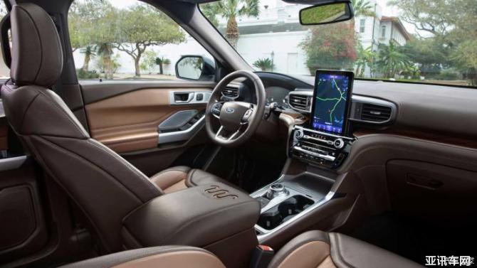相比于外觀,探險(xiǎn)者King Ranch在內(nèi)飾上的變化更大。其座椅采用了桃花心木皮革材質(zhì),并帶有按摩功能。而車(chē)門(mén)、方向盤(pán)等位置上同樣布有大面皮革材質(zhì)包裹。與此同時(shí),新車(chē)在儀表板、方向盤(pán)等位置上采用了帶有紋理的木紋飾板,搭配起來(lái)讓整車(chē)顯得十分有質(zhì)感。
