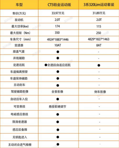 在配置上,售價接近的CT5鉑金運動版和3系320LiM運動套裝還是有很大差異的,具體就看下表吧: