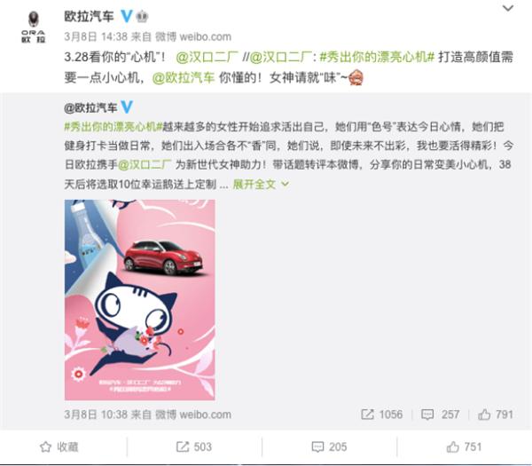在悅己消費(fèi)逐漸繁榮的當(dāng)下,歐拉亦變著花樣博得女性車主們的傾心,鼓勵(lì)更多女性消費(fèi)者共同參與。