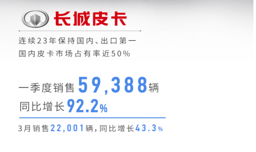 在3月份的銷量榜單中,我們可以看到長城皮卡對于現(xiàn)代皮卡市場的意義——3月共銷售22,001輛,同比大增43%,市占率近50%,而這其中最大的功臣就是長城炮,3月銷量達12085輛的它,累計10個月銷量過萬,蟬聯(lián)皮卡銷量冠軍,再次與風(fēng)駿5、風(fēng)駿7包攬皮卡市場單車型銷量前三名。可以見得,現(xiàn)在的長城皮卡尤其是長城炮,無論是在口碑還是在實力上,均得到了消費者的認可。