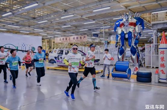 與以往全球所有的馬拉松不同,如文首所說,此次賽道設(shè)在了總裝、沖壓、焊裝三大車間及高環(huán)試驗場,中間的“啦啦隊員”則多是高大靈活的機械臂和智能化機器人,給人耳目一新的感覺。
