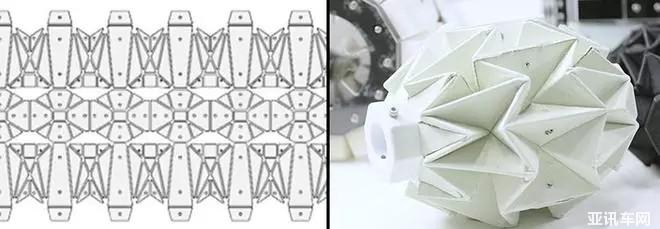 2019年,韓泰輪胎首次發(fā)布的變形輪胎,是“下一代駕駛實驗室”推出的第四項研究概念成果。它凝聚了韓泰研究團隊多年的心血,其基本原理類似折紙,形狀可根據(jù)路面情況的不同而發(fā)生變化,如此大開的腦洞徹底顛覆人們對輪胎的想象。