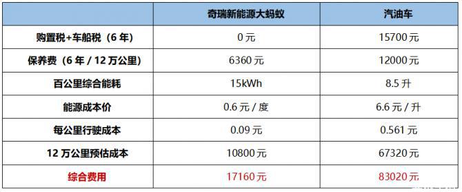 以目前市面上口碑不俗的純電SUV奇瑞新能源大螞蟻為例,6年開下來的養(yǎng)車成本只要17160元,相比汽油車竟然能省出65860元,相當于全家人去歐洲七日自由行的費用了!這么算算,還真是挺出乎意料的。
