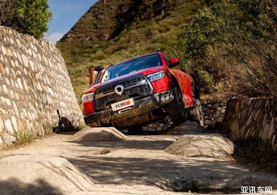 除此之外,長城越野炮的最小離地間隙達到228mm,接近角和離去角分別達到了30°和26°,涉水深度可達到700mm,再配以百路馳AT胎,通過性得到增強,使得車輛在面對各種極端越野地形都能順利通過。