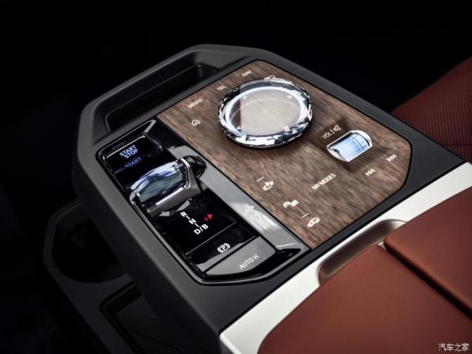 車廂內(nèi)部的設(shè)計更加輕薄、扁平,平整的中控臺在最大程度簡化物理按鍵并壓縮空調(diào)出風(fēng)口體積之后,展現(xiàn)出了一種簡約時尚且未來感十足的設(shè)計。最引人矚目的部分莫過于采用曲面設(shè)計的雙聯(lián)屏,并且車機系統(tǒng)在iDrive 8.0的支持下變得更為便利。新車駕駛模式調(diào)整部分雖然采用了與燃油版寶馬車型類似的布局,但木質(zhì)的面板與水晶材質(zhì)的旋鈕淋漓盡致地體現(xiàn)了寶馬的想象力與精湛工藝。