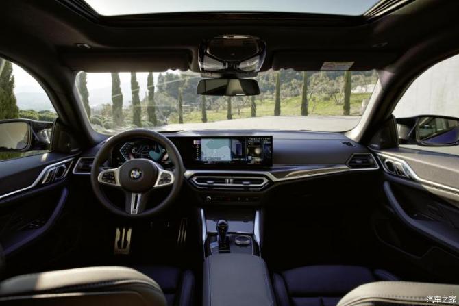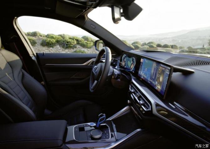 新車內(nèi)部最為吸睛的部分當(dāng)屬中控臺上矗立的雙聯(lián)屏。與iX上的雙聯(lián)屏一樣,i4上的這塊屏幕也采用了曲面設(shè)計,觸控顯示屏的尺寸為14.9英寸,全液晶儀表的尺寸為12.3英寸。偏向駕駛員的整體位置進(jìn)一步突出了新車專注駕駛員的定位。同時最新的iDrive 8.0系統(tǒng)也出現(xiàn)在了這塊屏幕上,能與駕駛模式聯(lián)動的它不僅讓使用體驗進(jìn)一步升級,在視覺效果上也更上一層樓。
