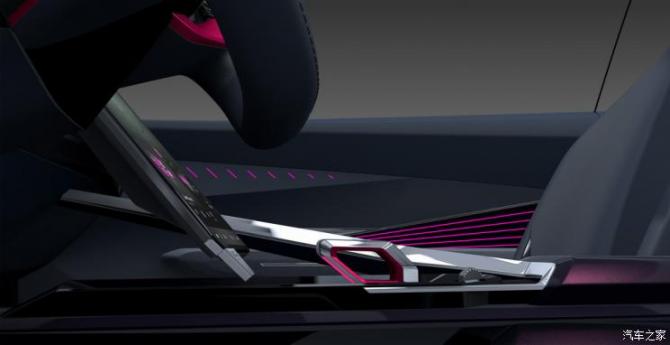 車內(nèi)部分,氛圍燈從兩側(cè)融匯到儀表板,形成一種無邊界的效果,燈條同樣會(huì)對(duì)應(yīng)不同的駕駛模式。扁平的方向盤頗有運(yùn)動(dòng)風(fēng)格,中央垂直的大屏幕簡(jiǎn)潔大方。此外鏤空的擋把體現(xiàn)出前衛(wèi)的風(fēng)格。