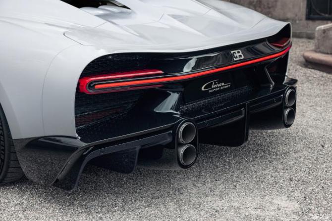 而車尾部分,除了長尾造型的變化,尾部擴散器的橫截面積進一步增加,使擴散器后緣的位置也更加偏上,從而將車尾的后緣面積減少了44%,由此,讓車尾氣流和風(fēng)阻得以顯著降低,這些技術(shù)改進成為車輛的點睛之筆,不僅優(yōu)化了車尾比例,增加了車尾寬度,還實現(xiàn)了更加修長的車身造型。此外,新車排氣的位置經(jīng)過重新設(shè)計,讓Chiron Super Sport具有極高的辨識度,即使在遠處也能一眼辨認(rèn)。為了提高擴散器的效果并為其提供更多空間,布加迪將原本位于中央的排氣系統(tǒng)放置于兩側(cè),并采用上下對齊的方式垂直排列。