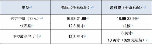 當(dāng)然,銳際最讓人中意的地方在于儀表盤(pán)和中控屏均使用了同級(jí)最大的12.3英寸液晶屏,不僅豪氣且科技感十足;昂科威采用了老氣的機(jī)械儀表盤(pán),最重要的是23.99萬(wàn)元的頂配車(chē)型都只有8寸液晶中控屏,想要10寸的還得加820元,在售價(jià)更貴的情況下不太厚道。
