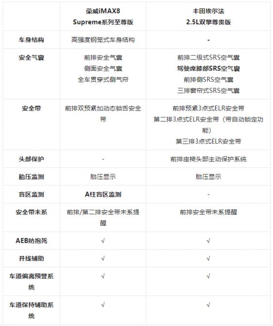 作為榮威品牌首款MPV,榮威iMAX8在研發(fā)之初便將最高安全標(biāo)準(zhǔn)要求融入車輛基因,致力于為用戶帶來全方位、無死角的安全守護(hù)。能夠在C-IASI碰撞測試中獲得車內(nèi)乘員安全指數(shù)、車外行人安全指數(shù)、車輛輔助安全指數(shù)3大測試項(xiàng)目7個小項(xiàng)目G(優(yōu)秀)評級認(rèn)證,足以證明榮威iMAX8卓越的安全性。反觀埃爾法,在J-NCAP碰撞測試中僅取得四星成績,碰撞安全方面的表現(xiàn)并不能對得起自己的“百萬身價”和“MPV之皇”的形象,安全性能被榮威iMAX8實(shí)力碾壓。