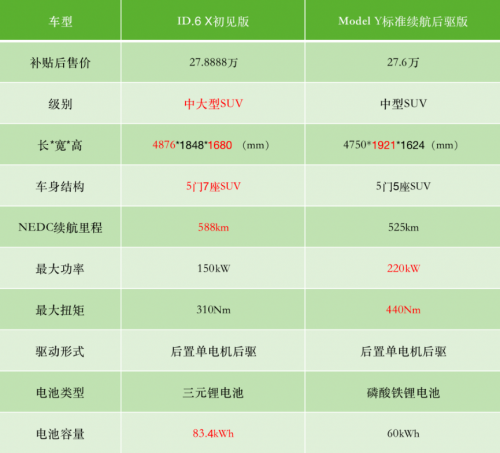 特斯拉Model Y和上汽大眾ID.6 X哪個(gè)好?長(zhǎng)與快的較量