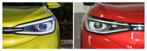 ID.4 X和ID.4 CROZZ在大燈上都采用了矩陣式LED大燈,另外大眾這次在燈上玩的花樣可不少,不過比ID.4 CROZZ更良心的是,ID.4 X全系標(biāo)配了IQ.Light,在動態(tài)照明效果上要更勝一籌。而且這兩款車型在大燈的設(shè)計上也有著明顯的不同,ID.4 X采用了開眼角的設(shè)計,這樣的設(shè)計之前也在途觀X上出現(xiàn)過,是大眾最新的設(shè)計語言,會讓車輛整體的設(shè)計更加年輕、潮流。而ID.4 CROZZ大燈的樣式則比較普通,顯得并沒有太多新意。