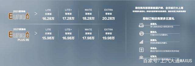 【上汽大通MAXUS EUNIQ 6各車型及價格區(qū)間】