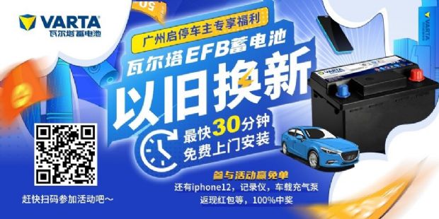 夏季蓄電池替換高峰期,瓦爾塔為廣州啟停車主送福利啦!即日起至9月30日,掃描下方圖片二維碼,或通過關(guān)注【VARTA瓦爾塔蓄電池】官方微信,點(diǎn)擊菜單欄【尊貴服務(wù)】,打開【VARTA EFB蓄電池】進(jìn)入活動(dòng)H5頁面,即可優(yōu)惠購買瓦爾塔EFB蓄電池,最快30分鐘上門安裝服務(wù)。參與開盲盒互動(dòng),還有機(jī)會(huì)贏取Iphone12、行車記錄儀、車載充氣泵、返現(xiàn)紅包等驚喜大禮,更有免單機(jī)會(huì)等你贏取,數(shù)量有限,先到先得!