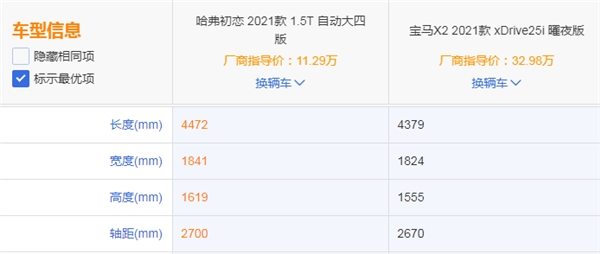其實(shí),它在空間上與合資車寶馬X2相比也同樣不遜色。寶馬X2整車尺寸4379mm*1824mm*1555mm,軸距2670mm,空間上能夠滿足普通人所需,但面對身材魁梧的駕乘者多少會存在一些問題,不會像哈弗初戀那么游刃有余。