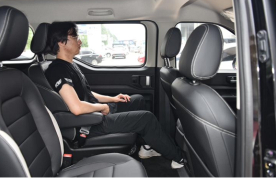 在車內(nèi)座椅空間布局上五菱征程表現(xiàn)總體十分寬裕。在后排頭部空間足足有兩拳多,舒適性有保障。腿部空間也游刃有余,在兩拳有余的狀態(tài),乘坐舒適輕松。二三排的走廊寬度約為200毫米,進出也十分方便。
