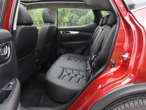 逍客的后排座椅整體很平整,而且填充物厚實,坐墊很長,有著很好的乘坐感受。中間地板凸起也比較低,幾乎不會影響乘坐。身高180的體驗者乘坐后排,腿部空間還有一拳的距離,頭部空間還剩下三指,整體的表現(xiàn)比較一般,并沒有很寬敞,對比大眾途岳要差很多。