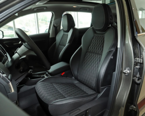 在內(nèi)飾方面柯珞克就做得比較精致,大量運用銀色鍍鉻裝飾、鋼琴烤漆工藝等,中控臺頂部采用的是軟性搪塑進行包裹,進一步提升了內(nèi)飾質(zhì)感。而途勝這方面就比較差一點,顯得很簡潔,中控臺按鍵以及旋鈕的布局偏向功能性,新的多媒體采用立屏的設(shè)計,而且尺寸還不小,分辨率也高。柯珞克的座位采用了皮質(zhì)織布材質(zhì),中央部分使用了網(wǎng)格狀設(shè)計,腰托部分很明顯的隆起,包裹性也很出色,主駕駛座還支持電動調(diào)節(jié),進一步增強駕駛員的舒適度。